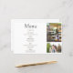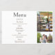 Présentez votre journée de mariage avec ce menu mariage de collage photo sophistiqué et chaleureux. Ce design présente un design contemporain qui allie l'élégance de la papeterie mariage classique à la touche moderne de la photographie personnelle. Ce menu mariage est parfait pour les couples qui recherchent une façon unique et personnelle de partager leurs détails mariages tout en gardant un air d'élégance sobre. M003