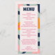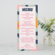 1970 vintage rétro super carte de menu mariage personnalisée en caractères gras super et couleurs pastel y compris; rose, bleu et orange. Cette carte de menu est facilement modifiable. Si vous avez besoin d'aide pour la personnalisation de ce produit ou si vous avez besoin de plus de produits correspondants pour cette collection, envoyez-moi un message aimable via Zazzle.