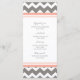 Elégant menu de dîner de mariage dans élégant motif rétro zigzags de pêche rose, gris et blanc chevron, personnalisable avec vos détails de dîner, disponible dans une large gamme de produits mariages assortis.
