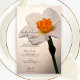 Customisez le joli Menu Mariage Daffodil de Printemps blanc avec les détails du repas que vous pourrez servir à votre déjeuner de la fête de jardin de mars, avril ou mai, brunch post mariage ou dîner de réception mariage en ajoutant la salade ou le premier plat, entrée ou deuxième plat et dessert ou troisième plat. Ce élégant menu nuptial fleuri et personnalisé présente une photo florale d'une fleur de narcisse blanche avec un centre orange sur la tige avec un arrière - plan beige