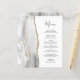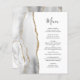 Le bord gauche de cet élégant menu mariage moderne comporte une bordure d'aquarelle gris et blanc ornée d'une parties scintillant en faux or. Le texte personnalisable combine un script d'écriture manuscrite gris charbon et des polices de cuivre sur un arrière - plan blanc. L'envers présente un design d'agate gris et or assorti.