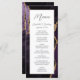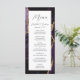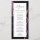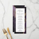 Ce menu mariage moderne et élégant présente un arrière - plan d'agate violet d'aquarelle orné d'une fausse parties scintillant dorée. Le texte apparaît dans une écriture élégante gris fusain et des polices sans serif sur un rectangle blanc. La conception de l'agate est répétée à l'envers.