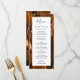 Ce menu mariage moderne et élégant est doté d'un arrière - plan d'agate orange brûlé à l'aquarelle et décoré d'une fausse parties scintillant dorée. Le texte apparaît dans l'écriture manuscrite gris fusain et les polices sans serif sur un rectangle blanc. La conception de l'agate est répétée à l'envers.