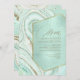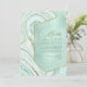 Vous obtenez à la fois le glamour et l'impact élevé avec cet ensemble de mariage de coordination qui comprend des motifs d'agate abstraits, texturés avec des faux cristaux et des reflets dans un film d'or scintillant. Des combinaisons de couleurs éclatantes, comme cette suite avec sa palette pastel douce du vert menthe au bleu turquoise, créent l'arrière - plan pour les pièces de cette collection coordonnée. Ce menu de réception de mariage comprend tous les éléments ci-dessus ainsi qu'une calligraphie élégante sur un étiquette hexagone semi-transparent pour tenir vos sélections de menu. Un modèle est fourni pour ajouter facilement les détails du menu, les initiales et la date du mariage. Affichez le lien de collection sur cette page pour voir tous les éléments correspondants dans cette belle conception ou recherchez ID827 pour voir des choix de couleurs supplémentaires pour cette conception.