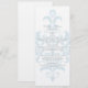 Simple avec élégance élégante décrit cette subtile carte de menu Mariage damassé avec un arrière - plan bleu clair damassé fleuri. Ce menu classe est parfait pour un mariage traditionnel et peut être facilement customisé avec vos détails de mariage. Pour plus d'options de personnalisation, cliquez sur le bouton Customiser.
