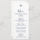 Ajoutez une touche marine polie à votre réception avec ce Monogram Nautical Navy Blue Ancre Mariage Menu. Avec un minimaliste arrière - plan blanc, un texte bleu marine et un monogramme d'ancre classique avec les initiales du couple en haut, cette carte de menu cravate votre cadre de table avec une élégance côtière intemporelle. Parfait pour les mariages sur la plage, les lieux balnéaires ou les fêtes de destination, ce design offre un agencement propre pour mettre en valeur votre repas préparé, des entrées au dessert. C’est à la fois un beau détail et un guide attentionné pour vos invités.
