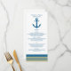 Elégante et classique Carte de menu Mariage d'Ancres nautiques avec une simple ancre de bateau et un ensemble de rayures en bleu marine foncé et or. Cette carte de menu mariage à thème de plage nautique peut être facilement customisée avec vos détails de mariage. Pour plus d'options de personnalisation, cliquez sur le bouton Customiser.
