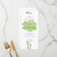 Ce design présente des fleurs blanches de lys calla et un trait de peinture vert d'aquarelle dans l'arrière - plan. Un design élégant représentant la verdure grâce à l'utilisation de l'aquarelle correspondant aux tiges vertes des lys calla. Ce design floral simple mais élégant peut être intégré à n'importe quel thème mariage. Un design unique de carte de menu mariage avec des éléments modernes. Des invitations de mariage et d'autres articles de papeterie sont également disponibles.