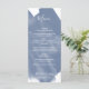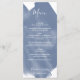 Cette décoration est ornée d'une élégante aquarelle bleue poussiéreuse. La typographie blanche contraste avec le trait bleu poussiéreux de peinture à l'aquarelle, créant un design simple et élégant. Design moderne avec une touche de simplicité et d'élégance. Ce design est idéal pour n'importe quel thème mariage. Le design parfait de carte de menu mariage toute saison. Des invitations de mariage et d'autres articles de papeterie sont également disponibles.