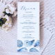 Dégustez vos invités avec notre menu mariage exquis avec trois plats d'entrée attrayants pour votre mariage sur la plage. Cette carte élégante ajoute une touche de charme côtier avec son design de coquille d'huîtres bleu aquarelle. Idéal pour les mariages des sites populaires de la côte Est comme Belle Mer à Rhode Island, The Ocean House au Connecticut, Oceanbleu à New York, Wychmere Beach Club au Massachusetts, et The Ritz-Carlton en Floride. Collection complète disponible, oeuvre de Concertina Press.