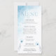 Menu Mariage simple pour vos invités - Une aquarelle dans les tons bleu poudreux et fleurs d'anémones aquarelles. Texte simple qui est élégant et propre.