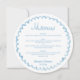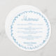 Menu Whimsical Round Mariage, Cadre Aquarelle Bleu Clair, Charme, Moderne & Entièrement Personnalisable. Célébrez l'amour avec une touche joyeuse ! Ce menu rond et fantaisiste est conçu pour ravir vos invités et donner un ton léger et élégant pour votre journée spéciale. Doté d'un cadre d'aquarelle illustré à la main en bleu clair doux sur un arrière - plan blanc propre, ce menu capture l'énergie fraîche des fêtes du printemps et de l'été, ou l'enchantement croustillant d'un mariage d'hiver ludique. Qu'est-ce qui rend ce design vraiment inoubliable ? La forme ronde unique - Un détail moderne et attrayant qui apporte personnalité et flair à votre table. Whimsy dessiné à la main - Le cadre bleu doux, peint avec soin, ajoute une touche de charme artistique à votre célébration. Entièrement personnalisable - Modifiez facilement le texte, les polices et la mise en page en ligne pour convenir à votre style mariage, romantique, ludique ou classique, aucun outil spécial nécessaire. Two Easy Options - Choisissez des menus professionnels imprimés ou téléchargez le fichier numérique instantanément pour une option pratique et économique. Ce menu mariage rond est plus qu’une simple liste de cours, il fait partie de l’histoire que vous racontez. Du premier regard à la bouchée finale, il rayonne de joie, de charme et de personnalité. Laissez votre jour de mariage commencer par les détails qui vous semblent. Commencez à customiser votre menu dès aujourd'hui et faites de chaque instant magique.