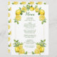 Menu mariage avec citrons et verdure. Parfait pour un mariage d'été de printemps. Les mots peuvent être changés en fonction de vos propres détails ou exigences