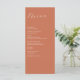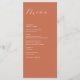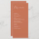 Une belle conception mettant en valeur la typographie de calligraphie de script élégante sur un arrière - plan orange brûlé en terre cuite. Parfait pour tous ceux qui aiment les conceptions minimalistes modernes. Une carte de menu mariage design et tendance avec des éléments classiques. Des invitations de mariage et d'autres articles de papeterie sont également disponibles.