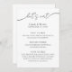 Menu Mariage noir et blanc élégant calligraphie avec script moderne et options de menu classique pour le dîner. Personnalisez le texte de votre menu à barres ou ajoutez du texte pour le menu buffet.