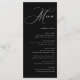 Donnez le ton à votre réception grâce à cette carte de menu mariage personnalisable avec calligraphie géante et une disposition propre et élégante. Conçue pour convenir à tous les thèmes ou saisons mariages, cette carte de menu ajoute une touche de finition soignée à vos tables tout en permettant aux clients de se tenir informés du repas. Personnalisez la carte avec vos sélections de menu et choisissez parmi une gamme d'options de couleur pour correspondre à votre style mariage. La calligraphie ludique et raffinée donne une sensation romantique sans être trop formelle, ce qui en fait un lieu idéal pour tout, des dîners en cravate noire aux réceptions détendues dans le jardin.