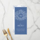 Menu du dîner mariage bleu et blanc moyen. Modifiez ce menu de 4 plats avec votre propre libellé d'option de repas. Feuilles et monogrammes simples mais modernes dessinés à la main. © Dessin et dessin original de Sarah Trett pour www.mylittleedenweddings.com exclusivement sur zazzle.