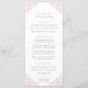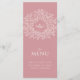 Menu du dîner rose et blanc mariage. Modifiez ce menu de 4 plats avec votre propre libellé d'option de repas. Feuilles et monogrammes simples mais modernes dessinés à la main. © Dessin et dessin original de Sarah Trett pour www.mylittleedenweddings.com exclusivement sur zazzle.