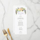 Voici une belle carte de menu mariage qui présente une image de couronne florale aquarelle en haut. Les couleurs utilisées comprennent l'orange mandarine, l'or, le vert, le violet, le bleu et plus encore. Votre texte personnalisé est en gris chaud, avec le nom de la mariée, le nom du marié et la date en bleu violet. L'image et le texte sont placés sur un élégant arrière - plan blanc. Assurez-vous de voir les produits mariages correspondants, y compris les invitations et les cartes RSVP, dans notre magasin.