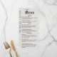 Menu simple, taille : 10,2 cm x 23,5 cm, papier : Signature mat