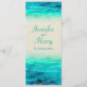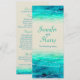 Belle mer bleu-vert peinte avec des vagues graphiques scintillent mariage menu de superposition. Une belle plage, d'inspiration océanique côtière, contemporaine, faire-part de mariage avec une mer d'aquarelle stylisée et main unique, sur un papier couleur sable. Idéal pour un mariage moderne à la plage. Modifiez cette invitation avec vos propres mots. Unique conçu et peint par Sarah Trett.