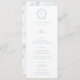 Vintage Regency Dusty Blue Crest monogramme, menu mariage. Crête de style baroque d'inspiration vintage avec coordination de la typographie bleue. Caractéristiques, élégant style Chinoiserie Style jardin à motifs floraux.
