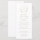 Initiales monogrammes encadrées par d'élégantes crêtes et des feuilles botaniques illustrés à la main, détails du menu en écriture élégante et police classique, simple et luxueux. Grand menu en faux or et blanc pour mariage classique moderne, mariage classique simple, élégant mariage de jardin botanique. Voir toutes les pièces correspondantes dans la collection.
