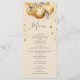 Faites savoir à vos invités ce qui se trouve dans le menu de votre réception de mariage à l'aide de ce menu à thème mariage de Noël doré beige.