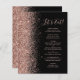Le bord gauche de cet élégant menu mariage moderne présente une bordure rose en faux parties scintillant or. Le titre et le texte personnalisables combinent le script d'écriture manuscrite rose rose et les polices de caractères sur un arrière - plan noir. L'envers présente une parties scintillant en or noir et rose assortie.