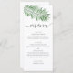 Menu Mariage de plage tropicale aquarelle. Palmier vert