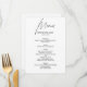 Menu mariage de script clair avec texte noir changeant imprimé sur arrière - plan blanc