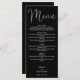 Ce menu mariage de script noir et blanc peut être personnalisé avec tous vos menus spéciaux de jour de mariage, noms et date spéciale. Conçu par Thisisnotme©