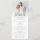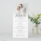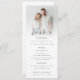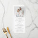 Menu Mariage de script de retouche photo moderne. Une typographie informelle en noir pour le titre principal Menu complétant le reste du texte que vous pouvez facilement personnaliser. Remplacez l'exemple de photo par votre préféré.