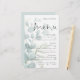 Eucalyptus Budget Elegant Script Mariage Menu. Un prix économique de 5,5" x 8,5", sur un élégant stock LINEN de 110 lb - pour une sensation de luxe à un bon rapport qualité-prix, il est parfait pour les menus, ainsi que des invitations et des programmes, etc. Cette alternative de taille budgétaire est également disponible dans d'autres choix de papier. Le stock de carte SEMI-GLOSS 110 lb est à peu près de la même épaisseur qu'une carte postale, donc fonctionne bien aussi pour les invitations. Le papier FELT 100 lbs est de couleur bouffante, PAS blanc, donc ajoute une touche rustique. Le stock de papier MATTE 80lbs est blanc vif, pour une impression nette, idéal pour vos menus et programmes, tandis que le papier SATIN 80lbs est mince et léger, idéal pour les enceintes. VEUILLEZ NOTER QUE LES ENVELOPPES OPTIONNELLES SONT UN PEU PLUS GRANDES EN TAILLE À 6,75" x 9" env. Ce design moderne a Menu dans élégant script défini en haut et le reste du texte aligné à droite en dessous duquel vous pouvez facilement personnaliser, avec un arrière - plan teinté d'eucalyptus bleu.
