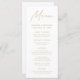 Elevez votre réception de mariage avec notre menu mariage magnifiquement conçu, avec un script d'or manuscrit élégant sur un arrière - plan blanc propre. Parfait pour les couples à la recherche d'un look simple mais sophistiqué, ce design moderne vous permet de personnaliser avec vos noms, date mariage et menu. Son style minimaliste s'inscrit sans effort dans un thème mariage, ajoutant une touche d'élégance à votre journée spéciale. Faites une impression durable sur vos invités avec un menu qui reflète la simplicité chic de votre vision mariage.