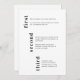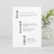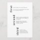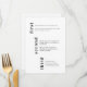 Menu du Mariage de texte vertical noir blanc minimal unique avec les noms de l'époux et la date du mariage au verso. Tous les champs de texte et les couleurs sont personnalisables dans l'outil de conception.