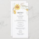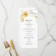 Menu mariage de tournesol rustique avec flûtes jaunes aquarelles peintes à la main et feuillage botanique terreux. Customisez votre propre menu mariage à l'aide du modèle fourni.