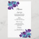 Menu de mariage Dendrobium orchidée violet et bleu turquoise. Un menu mariage simple qui présente une belle variété d'orchidées appelée dendrobium bleu. Il est turquoise / turquoise dans la couleur associée à violet et violet royal violet. Un grand choix de fleurs pour le thème de la couleur mariage paon.