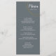 De grands anneaux luxueux ornent votre menu mariage minimal, leur donnant une finition subtilement sophistiquée. Chaque cours est décrit ci-dessous dans des polices formelles sur fond de tons cool ou terreux. Au verso, vos initiales apparaissent sur un bloc de couleur solide qui complète le schéma choisi. Customisez-le avec vos propres détails. Pour plus de personnalisation, cliquez sur le lien "Personnaliser" et utilisez les outils de design avancés de Zazzle.