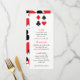 Parfaits pour un mariage de casino classique de Las Vegas rouge, noir et blanc, ces menus peuvent être entièrement adaptés à votre événement. N'oubliez pas de commander suffisamment pour chaque établissement !