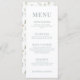 Améliorez le charme de votre réception de mariage grâce à ces cartes de menu mariage botanique sophistiquées et élégantes. Décoré avec un délicat script de calligraphie verte poussiéreuse et des feuilles d'eucalyptus avec verdure à l'arrière.