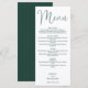 Ce menu de mariage élégant en écriture vert émeraude peut être personnalisé avec tout votre menu spécial du jour du mariage, les noms et la date spéciale. Conçu par Thisisnotme©
