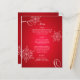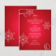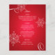 Snowflake Elegance menu de mariage d'hiver en rouge avec des flocons de neige blancs décoratifs et du texte personnalisé disponible à l'avant et à l'arrière selon les besoins.