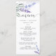 Menu Mariage élégant à l'aquarelle lavande