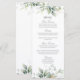 Menu Mariage élégant feuilles de eucalyptus verdure or