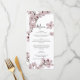 Cette conception présente des fleurs de cerisier florales roses. Les fleurs de cerisier qui tombent flottant dans l'air annonçant l'arrivée du printemps. Les fleurs présentent des pétales roses clair, des centres rouges bordeaux et des branches brunes rustiques. Conception élégante de carte de menu de mariage avec des éléments modernes. Les invitations de mariage assorties et autres articles de papeterie sont également disponibles.