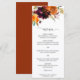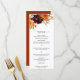 Menu de mariage bohème rustique avec un bouquet floral peint à l'aquarelle avec des teintes chaudes et terreuses d'orange brûlé, de terre cuite et de bordeaux profond ainsi que de la verdure. Ce menu élégant avec les riches teintes de l'automne est idéal pour un mariage d'automne.