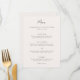 Menu de mariage de style traditionnel présentant un design simple mais élégant avec vos prénoms dans une grande police serif.