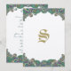 Menu de mariage vintage or bleu vert cuivre paisley paon