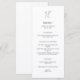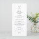 Un menu de mariage moderne et élégant avec une mise en page noire et blanche épurée et un monogramme personnalisé en haut. Le format 4×9 élancé crée une présentation raffinée et éditoriale, tandis que la typographie minimaliste garde chaque plat clair et facile à lire. Personnalisez avec vos noms, date et choix de menu pour créer une touche finale soignée pour vos tables de réception.
